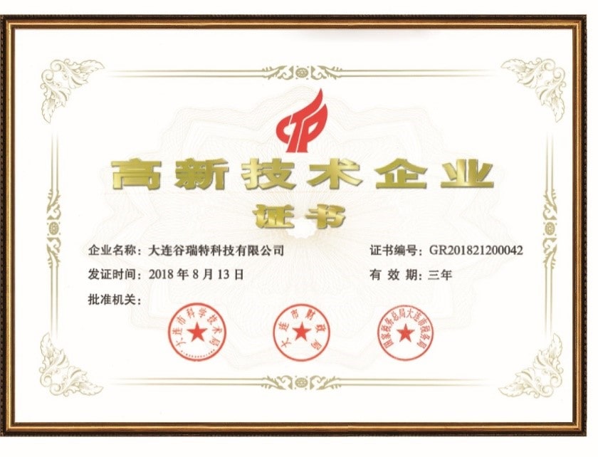 喜訊!喜訊!——根據(jù)國家《高新技術(shù)企業(yè)認(rèn)定管理辦法》和《高新技術(shù)企業(yè)認(rèn)定管理工作指引》的相關(guān)規(guī)定,“大連谷瑞特科技有限公司”被認(rèn)定為國家級(jí)高新技術(shù)企業(yè)。近日,公司已收到由大連市科學(xué)技術(shù)局、大連市財(cái)政局、國家稅務(wù)總局大連市稅務(wù)局聯(lián)合頒發(fā)的“國家高新技術(shù)企業(yè)”認(rèn)定證書,正式邁入國家高新技術(shù)企業(yè)行列。