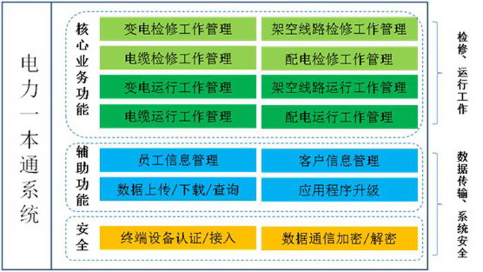 系統(tǒng)主要由終端設(shè)備管理,數(shù)據(jù)傳輸,檢修業(yè)務(wù)實施管理,運行業(yè)務(wù)實施管理以及安全防護管理等業(yè)務(wù)構(gòu)成。
